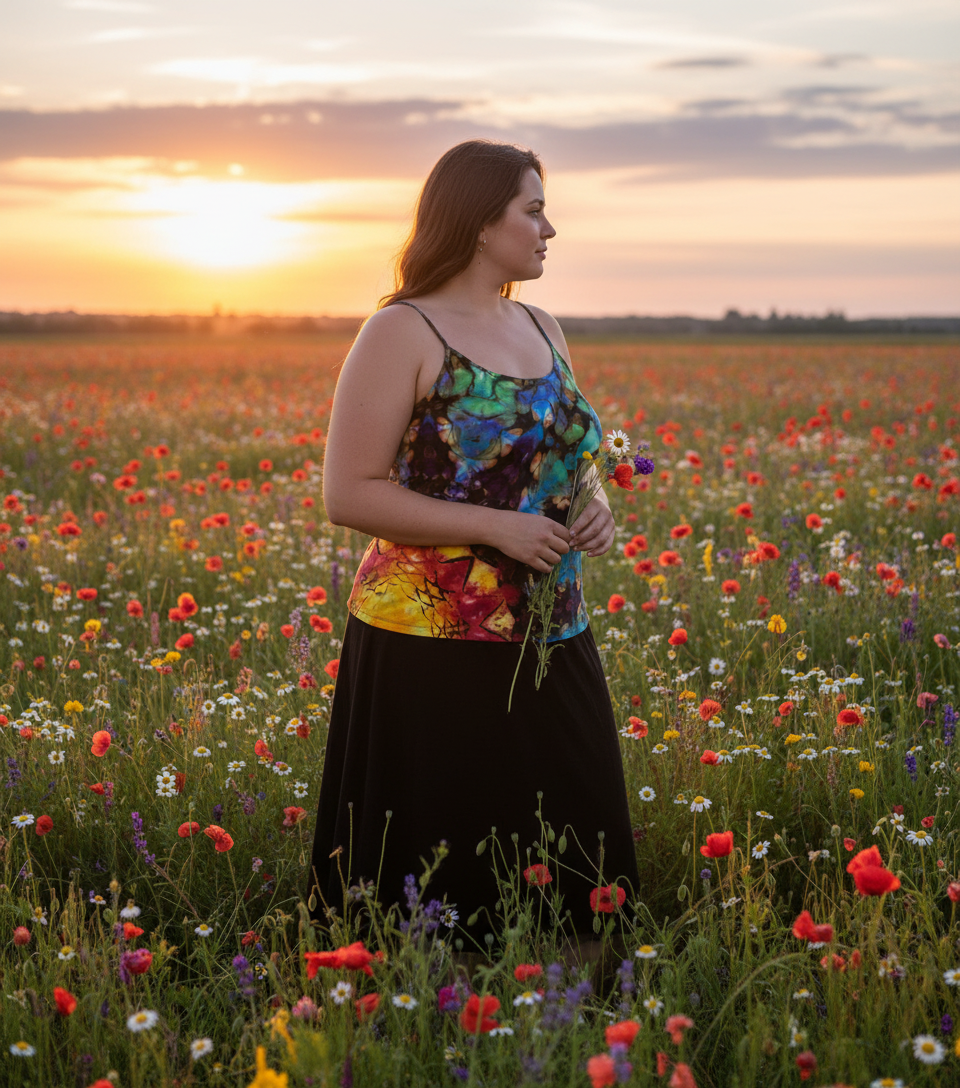 SKTD reverse camisole sunrise with powerful rays and psychedelic faces (Time &True), Reverse