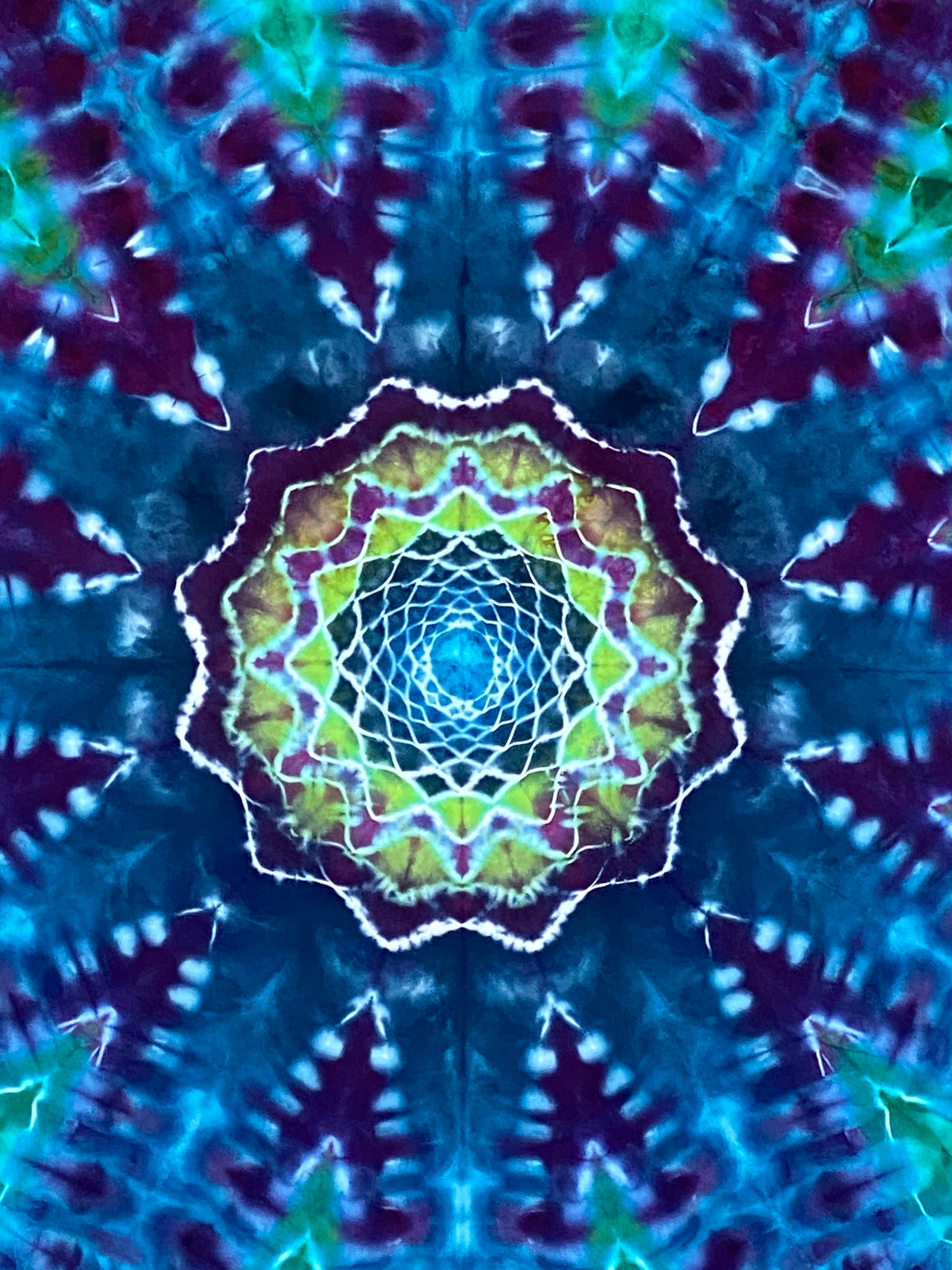 12 point mandala.  Hemmed edges. Custom cloth hanging loops