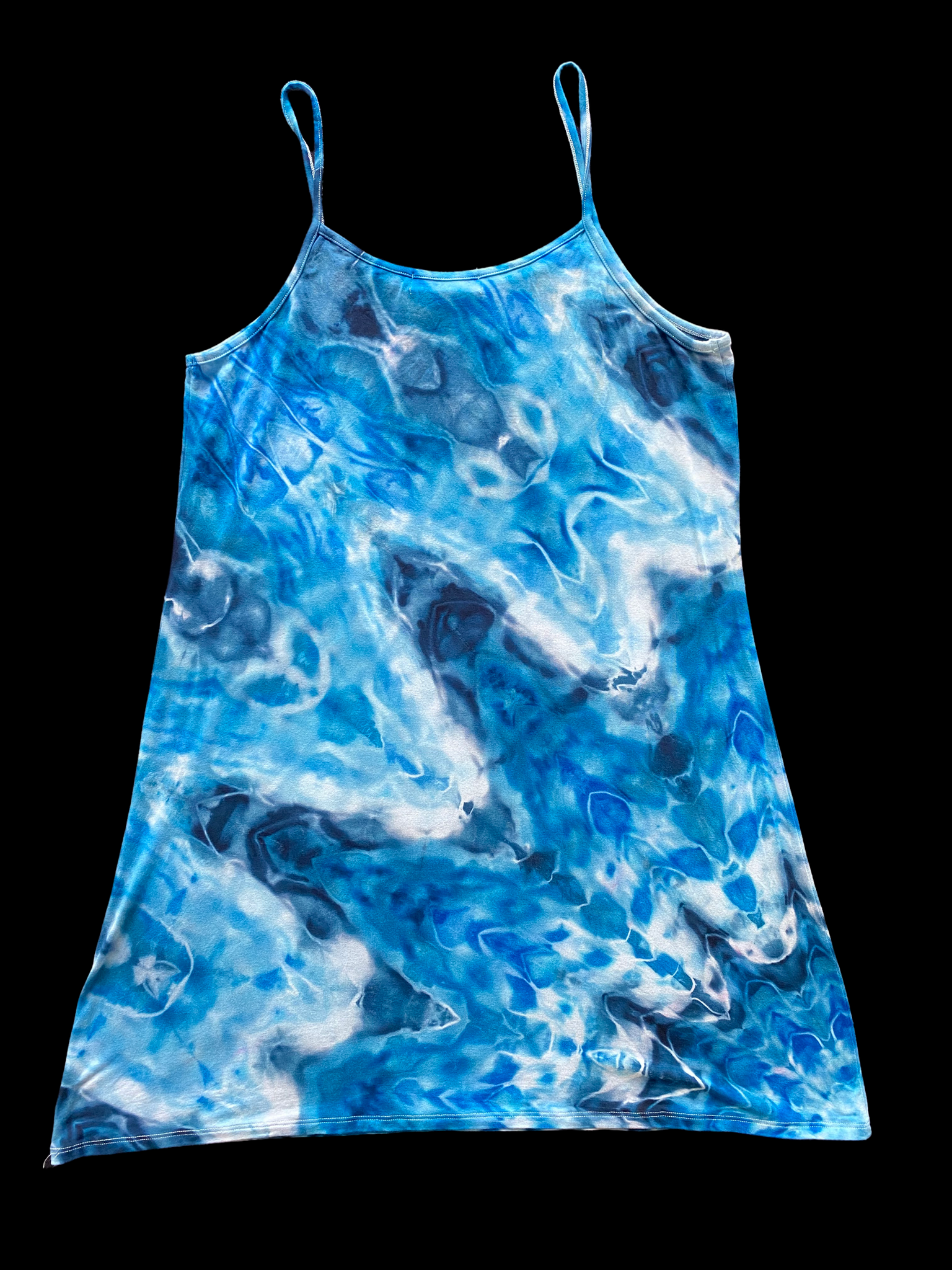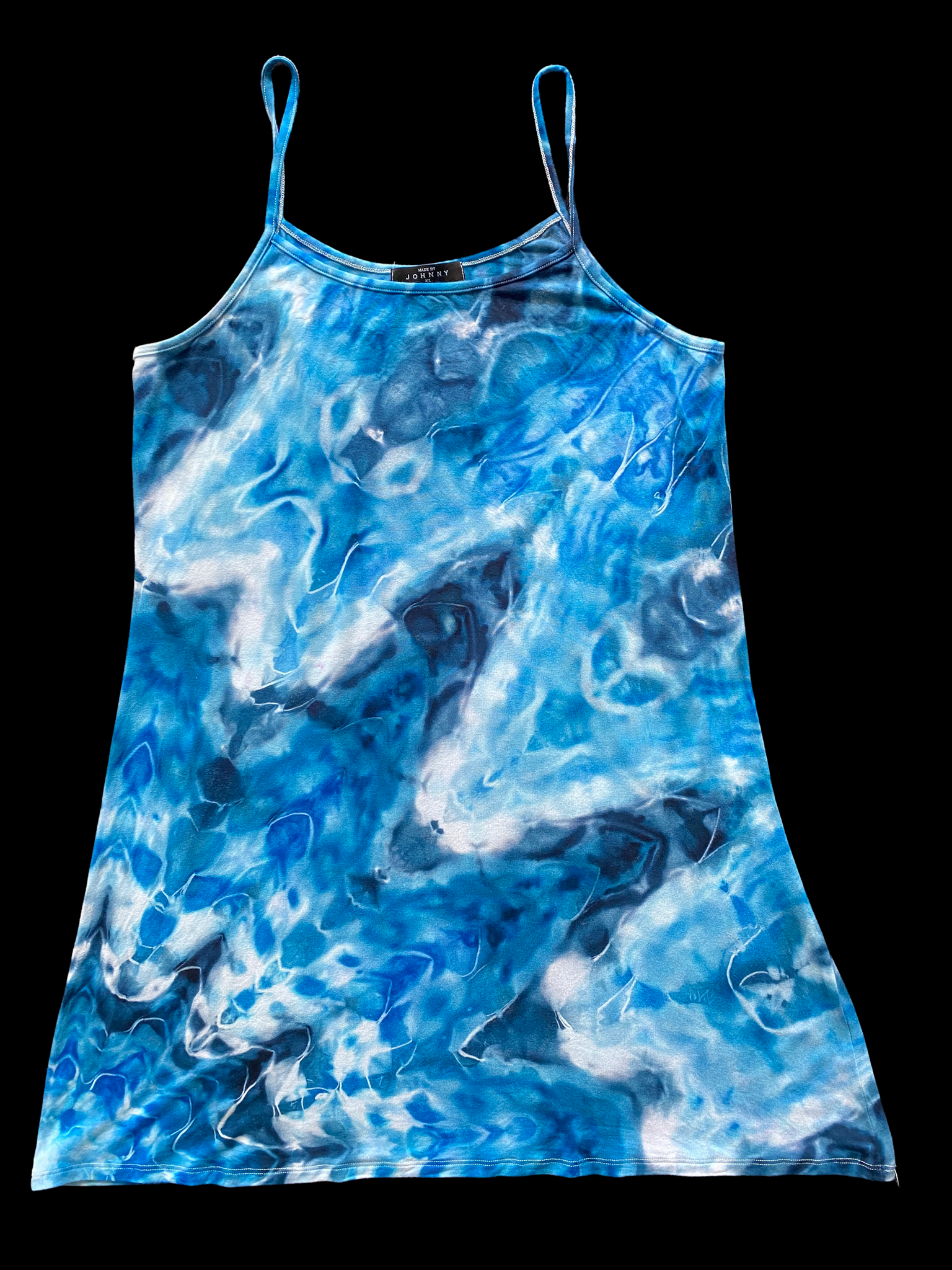 SKTD above knee soft rayon dress made for vacations that need some Bahama blue water. Rayon, Spaghetti Strap, corner mandala