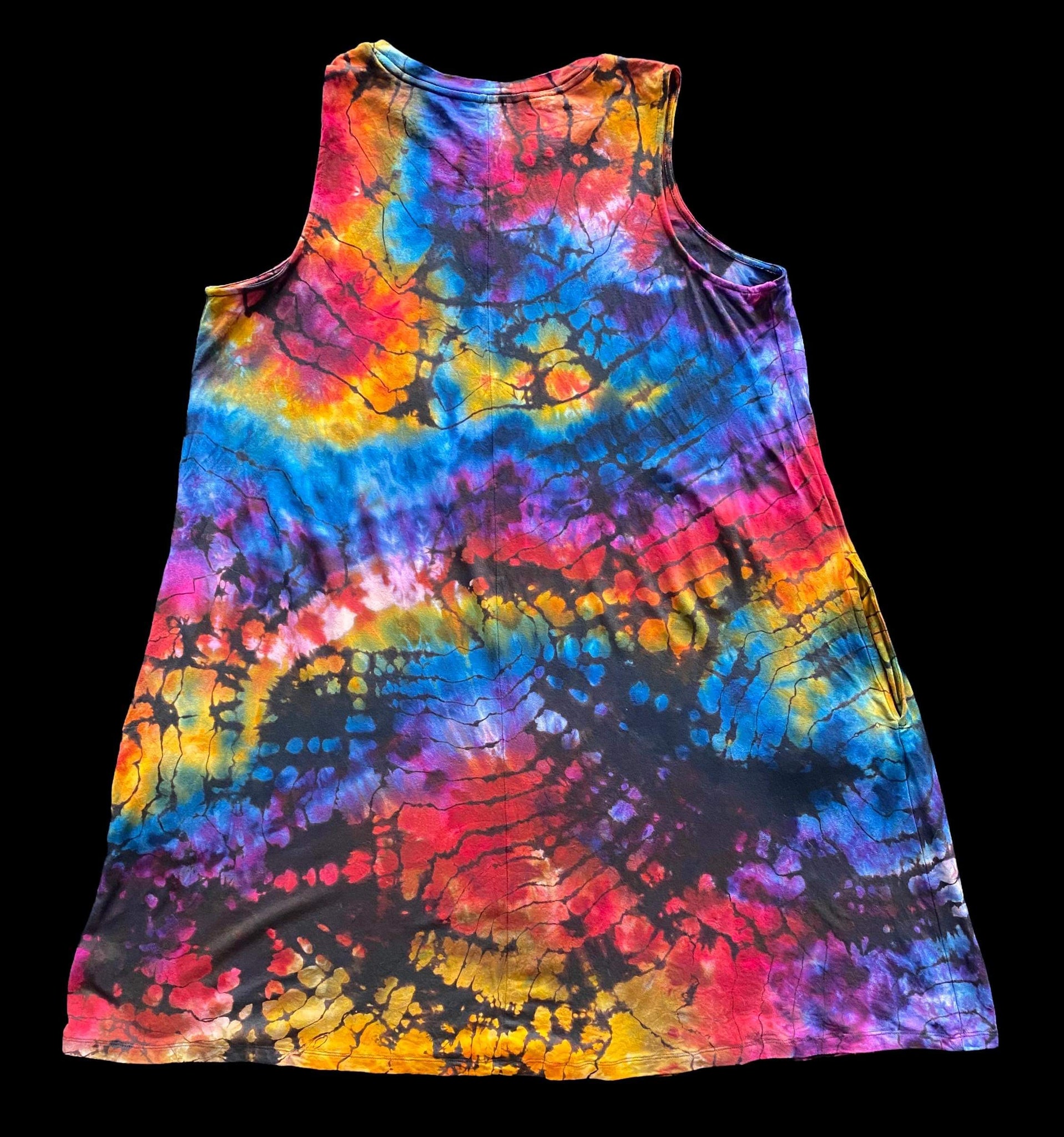 This dress is ready for a party. With 2 front pockets, it falls just above the knee, sleeveless, super soft rayon and spandex you will for sure get noticed.